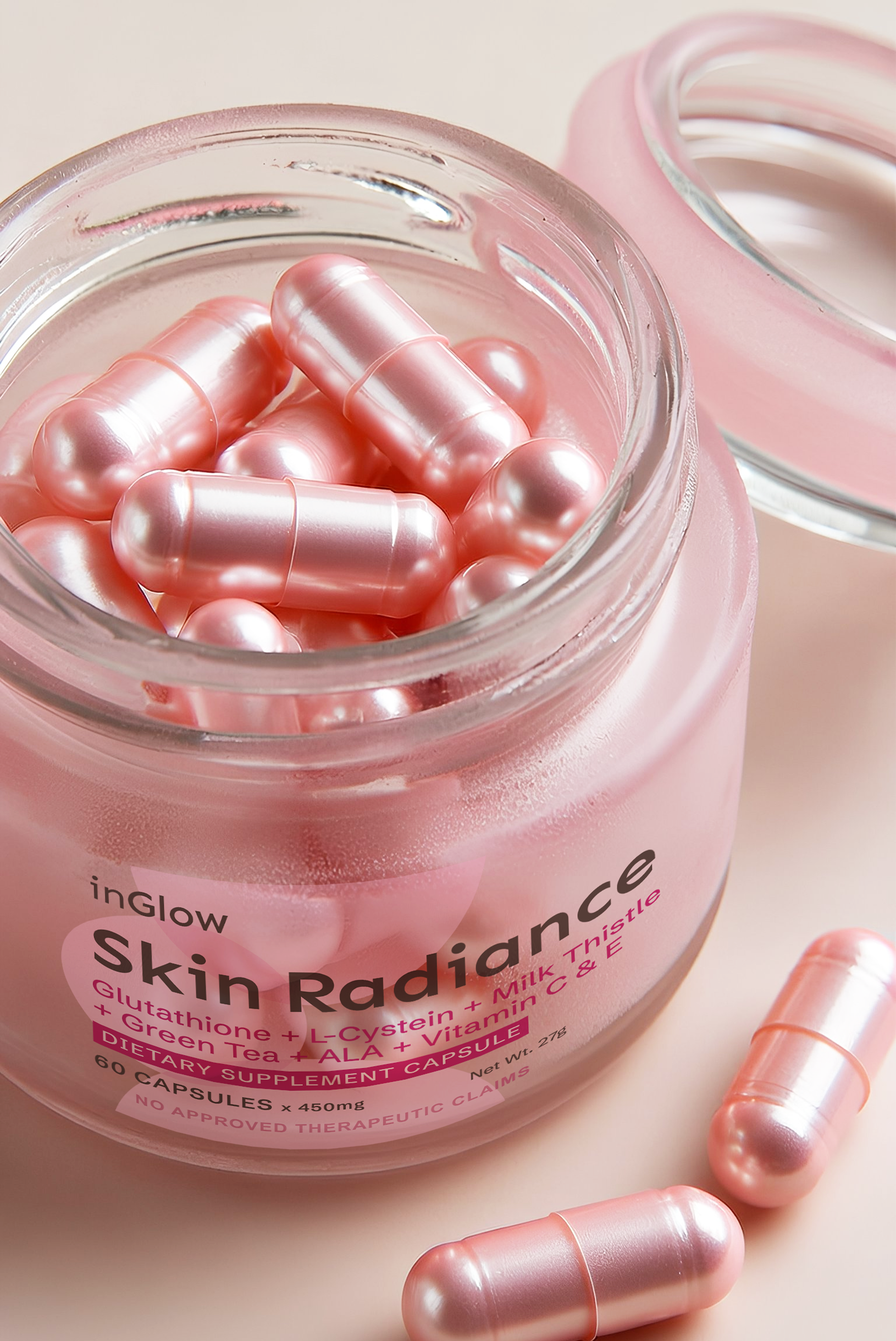 Skin Radiance is your daily glow and defense routine in one capsule. This smart glutathione blend goes beyond brightening by helping fight daily stress, pollution, and toxins that can dull your skin. With Glutathione, Vitamin C, Green Tea, ALA, Milk Thistle, and L-Cysteine, it helps keep skin clearer, brighter, and more resilient from the inside out. Zero sugar, no bleaching agents, just easy daily support for healthy-looking skin nourished from within.